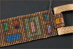 especially when moving part are involved. Often mathematical equations are involved - not something I enjoy! When designing a beading pattern, a lot of thought goes into how various beads will work with one another, how many different sized beads will be needed, and if adding mixed media, how those elements can be integrated. For instance, in working the prototype for a bracelet I am in the midst of designing, I've run into a design flaw - in short I have to come up with another idea. This bracelet was almost completed, the metal clay clasp and beaded toggle were attached, and it was looking good. Then I slipped the toggle through the clasp and realized that the toggle strap was too narrow for the opening in the clasp causing the toggle to slide back and forth inside the clasp which in turn would cause the bracelet to shift on the wearer's wrist. I'll have to come up with a solution so it's back to the drawing board for me!