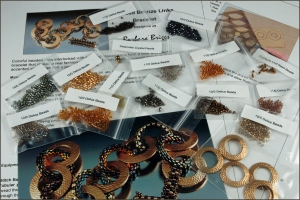 Is a pattern that I designed two years ago. I’ve recently updated it to include directions for making the bronze metal clay links, although bronze washers from the hardware store can be substituted and hammer textured for those not enthused about making their own bronze links. I’ve just listed this design in my Etsyshop and it is now available as a kit or the pattern may be