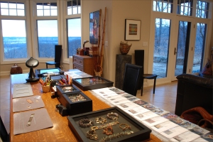 My space always seems to take on a life of its own. Looking at this photo it’s difficult to believe that a day ago my beading studio was utter chaos. I knew it was time to tidy a bit when I started having trouble finding things that were right under my nose! I’m fortunate to have a large table, which is ideal for working on several projects at once and situated in a room with adequate light for beading. It’s amazing how many items I found that I had been seeking for the longest time. I came across beads that I had forgotten I had, which of course have fueled my desire to start even more projects! The patterns I’ve designed are now easy to view along with the finished prototypes. Having them in plain sight instead of hidden away in a bin gives me easy access and facilitates filling Etsy orders for kits, patterns, and embellishments. I’m going to try very hard to keep my beading area clear of clutter, but I know it’s pure folly to promise that it will remain so!